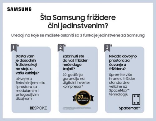 Međutim, sve sada može biti lakše i brže upravo zahvaljujući kompaniji Samsung čiju liniju kućnih aparata s pravom možemo nazvati vašim idealnim saveznicima u domaćinstvu.
