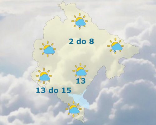 U Crnoj Gori danas ce biti promjenljivo oblačno, u sjevernim predjelima ponegdje slab snijeg ili susnježica, od sredine dana smanjenje oblačnosti. Tokom noći, novo jače naoblačenje, koje će mjestimično usloviti padavine. Vjetar slab do umjeren i promjenljiv, u prvom dijelu dana, ponegdje umjeren do pojačan, sjevernih smjerova, a tokom noći na sjeveru, mjestimično pojačan jugozapadnii. Najviša dnevna temperatura vazduha od 2 do 15 stepeni, kazali su iz Zavoda za hidrometeorologiju.