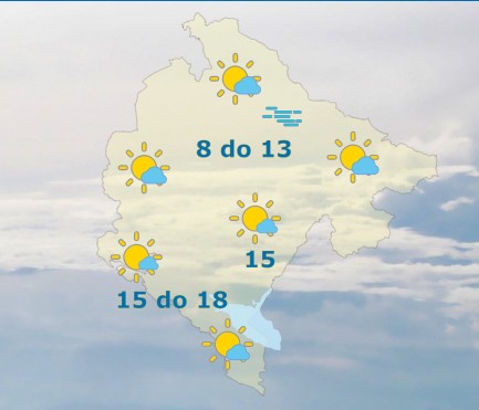 U južnim i centralnim predjelima Crne Gore biće pretežno sunčano, tokom jutra ponegdje moguće umjereno oblačno. Na sjeveru, ujutru ili prijepodne po kotlinama magla ili niska oblačnost, tokom dana pretežno sunčano. Vjerta uglavnom slab promjenljivog smjera. Najviša dnevna temperatura vazduha od 8 do 18 stepeni, saopšteno je iz Zavoda za hidrometeorologiju.