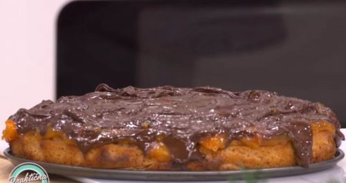 Sastojci: deset kašika džema, deset kašika šećera, kesica cimeta, jedan limun, jedna pomorandža, kesica praška za pecivo, 500 g brašna, 250 ml mlake vode, šaka oraha, šaka suvog grožđa, 150 g posne čokolade