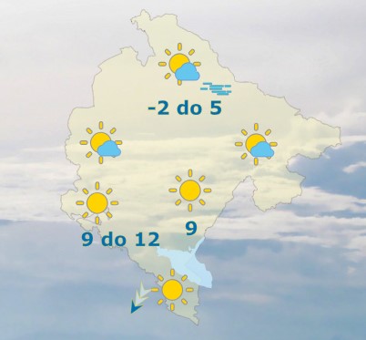 Danas će u Crnoj Gori biti pretežno sunčano, mjestimično uz umjerenu oblačnost. Na sjeveru, tokom jutra ili prijepodneva jak mraz i povećana oblačnost, a po kotlinama moguća i magla. Vjetar umjeren do pojačan sjeverni i sjeveroistočni, tokom jutra, osim na krajnjem jugoistoku, znatno će oslabiti ili prestati. Najviša dnevna temperature vazduha od -2 do 12 stepeni, saopšteno je iz Zavoda za hidrometeorologiju.