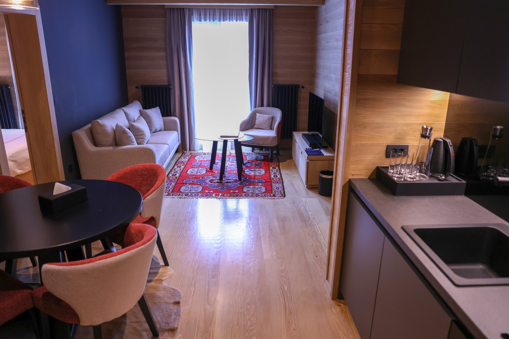 – Ovo je luksuzni hotel na trenutno najvišem nadmorskom položaju u zemlji. Spoj rustičnog šarma i moderne udobnosti u enterijerima je upotpunjen repariranim tradicionalnim ćilimima, koje smo otkupljivali od stanovništva, ručno tkanim uzglavljima kreveta i fotografijama iz prošlosti Kolašina, dominanto sa skijaškim motivima koji odaju počast istoriji područja i tradiciji zimskih sportova grada. Iza svakih vrata rafinirani dizajn ambijenta u drvetu od poda do plafone, goste uvodi u atmosferu planinske kolibe luksuzne udobnosti – saopštila je Dragana Bećirović, savjetnica na projektu Kolašin Valleys.