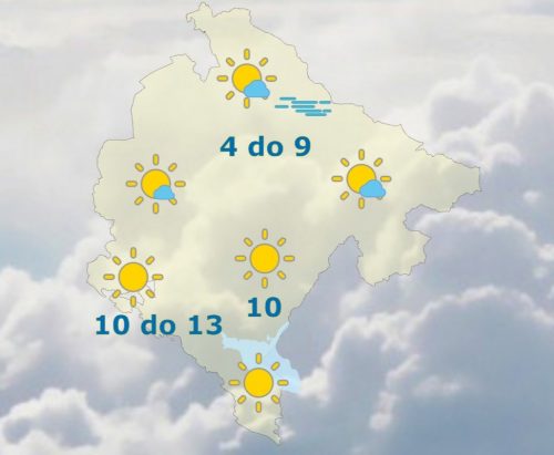U Crnoj Gori danas će biti pretežno sunčano. Na sjeveru, ujutru po kotlinama magla, tokom dana osjetno toplije vrijeme. Vjetar slab do umjeren promjenljivog smjera, ujutru na jugoistoku umjeren sjeveroistočni. Najviša dnevna temperatura vazduha od 4 do 13 stepeni, kazali su iz Zavoda za hidrometeorologiju.