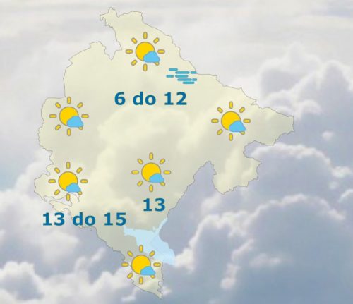 U Crnoj Gori danas će biti pretežno sunčano, ponegdje uz malu do umjerenu oblačnost. Krajem dana povećanje oblačnosti, koje na sjeveru, kasno tokom noći, tek ponegdje može usloviti slabe padavine. Vjetar slab do umjeren promjenljivog smjera, tokom noći sjeverni i sjeveroistočni, u pojačanju. Najviša dnevna temperatura vazduha od 6 do 15 stepeni, kazali su iz Zavoda za hidrometeorologiju.