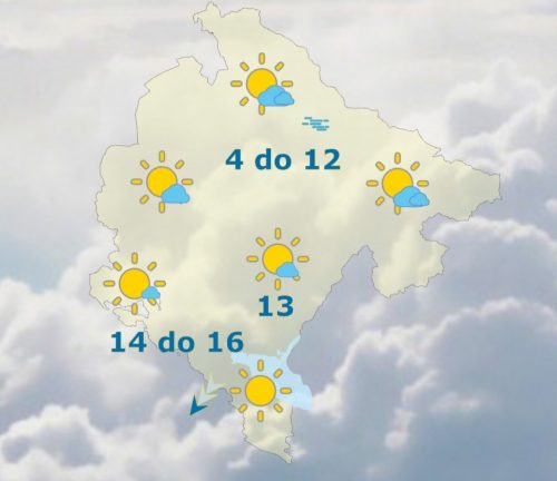 U Crnoj Gori danas će biti pretežno sunčano, ponegdje uz malu i umjerenu oblačnot. Na sjeveru, u jutarnjim satima, po kotlinama mjestimično magla ili povećana niska oblačnost. Vjetar uglavnom slab do umjeren, sjevernih smjerova. Najviša dnevna temperatura vazduha od 4 do 16 stepeni, kazali su iz Zavoda za hidrometeorologiju.