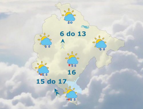 U Crnoj Gori danas će biti promjenljivo oblačno sa sunčanim intervalima, a rano ujutru u južnim predjelima ponegdje kiša. U drugom dijelu dana i tokom noći pretežno oblačno povremeno kiša, u južnim predjelima i pljuskovi i grmljavina. Kasno tokom noći, na sjeveru, u planinama moguć slab snijeg. Vjetar umjeren do jak, južni i jugoistočni. Najviša dnevna temperatura vazduha od 6 do 17 stepeni, kazali su iz Zavoda za hidrometeorologiju.