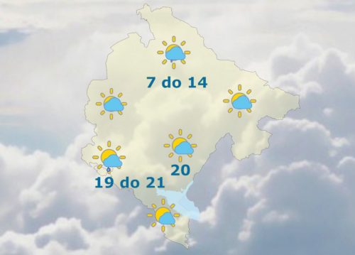 U Crnoj Gori danas će biti promjenljivo oblačno, na jugu sa dužim sunčanim intervalima, a ponegdje je moguća slaba kratkotrajna kiša ili pljusak. Krajem dana razvedravanje. Vjetar uglavnom slab do umjeren, sjevernih smjerova. Najviša dnevna temperatura vazduha od 7 do 21 stepen, saopšteno je iz Zavoda za hidrometeorologiju.