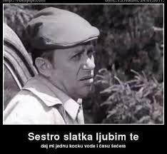 – Idemo mi da isprosimo devojku. Još kad budemo kazali da nam ne treba miraz nego da devojku uzimamo onako klot frket. …. Pa ko danas uzima devojku bez miraza. Pa to nema nigde, ni u ludnicu to nema.