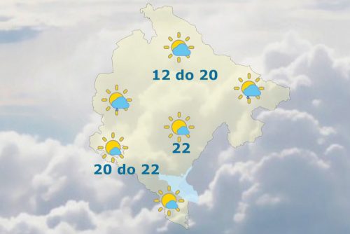 Na jugu Crne Gore danas će biti pretežno sunčano, ponegdje uz malu ili umjerenu oblačnost. Na sjeveru, promjenljivo oblačno sa sunčanim intervalima, uz uslove ponegdje za kratkotrajnu kišu, uglavnom u popodnevnim satima. Vjetar slab do umjeren, promjenljivog smjera. Najviša dnevna temperatura vazduha od 12 do 22 stepena, saopšteno je iz Zavoda za hidrometeorologiju.