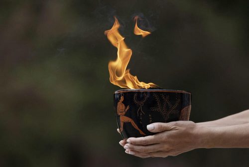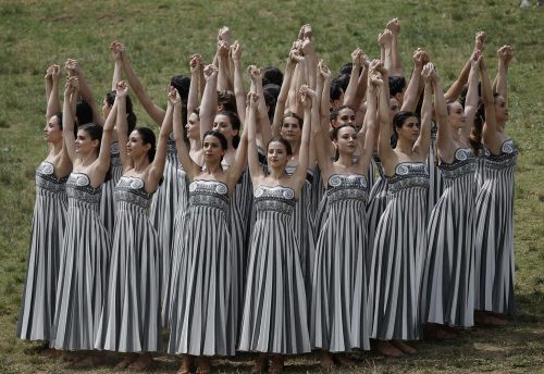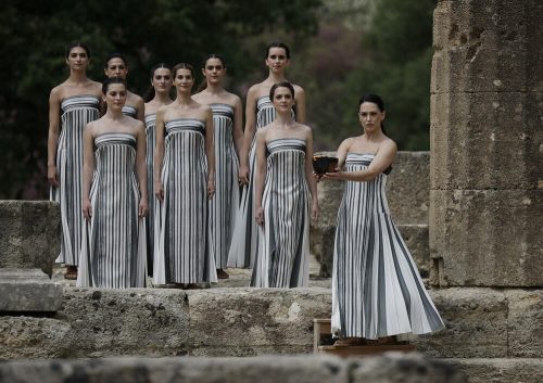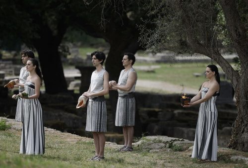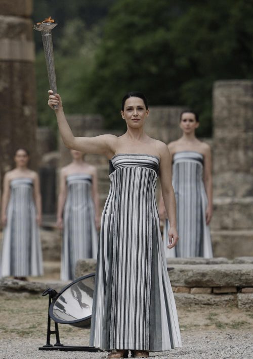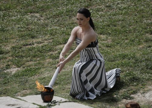 Oblačno nebo osujetilo je pokušaje da se ispred Herinog hrama plamen upali na uobičajeni način, kada glumica obučena kao drevna grčka sveštenica, koristi zrake sunca da zapali srebrnu baklju.