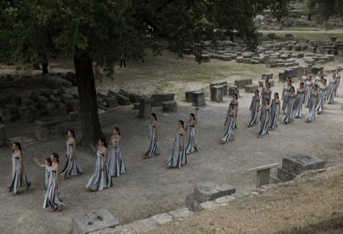Hiljade gledalaca ispunile su Olimpiju usred srušenih hramova i sportskih terena na kojima su se održavale drevne Igre od 776. godine prije nove ere do 393. godine.