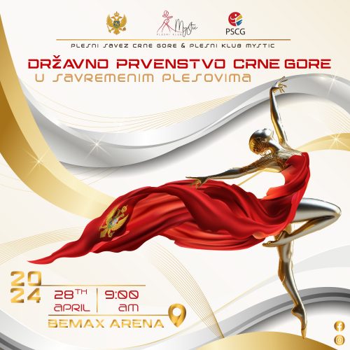 Državno prvenstvo u plesu, jedan od najvećih plesnih događaja u Crnoj Gori, održaće se 28 .aprila u Sportskoj dvorani ,,Bemax Arena” u Podgorici, sa početkom u 8:30 sati, saopštili su iz Plesnog saveza Crne Gore.