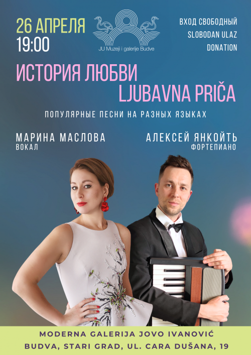 Koncert ,,Ljubavna priča”, umjetnika iz Sankt Petersburga, Marine Maslove i Alekseja Jankojta, biće održan u budvanskoj Modernoj galeriji ,,Jovo Ivanović”, sjutra veče, sa početkom u 19 sati.