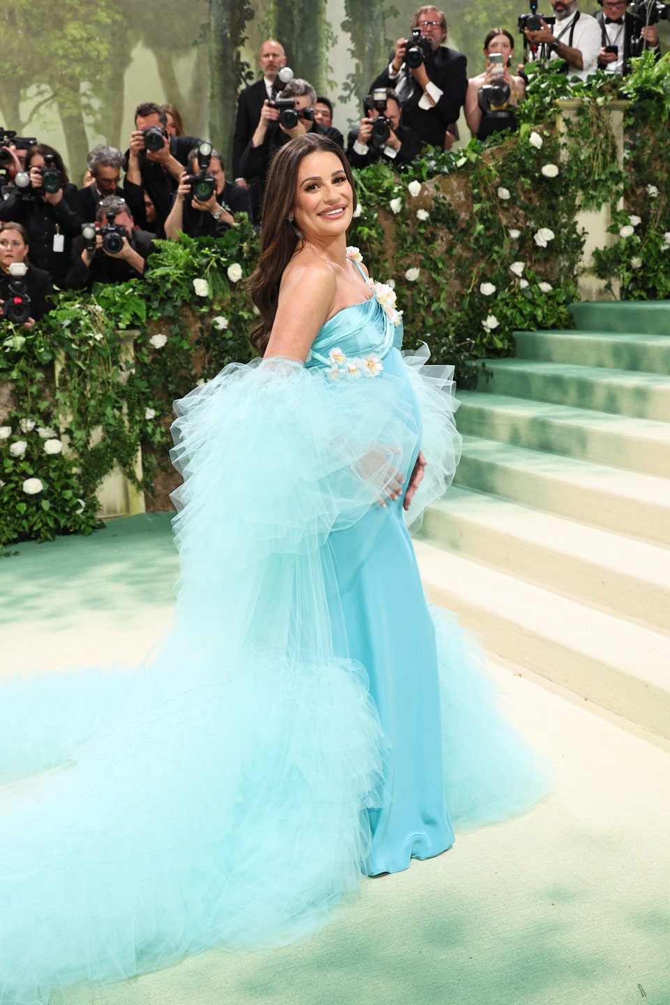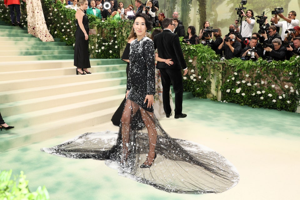 Haljinu Điđi Hadid pridržavalo je pet osoba dok se penjala stepenicama. Dizajnerski potpis je Toma Braunija, a da bi je izradili bilo je potrebno 20 ljudi, 2.800.000 mikro perli i 5.000 sati. Žuta ruža urađena je u 3D tehnici.