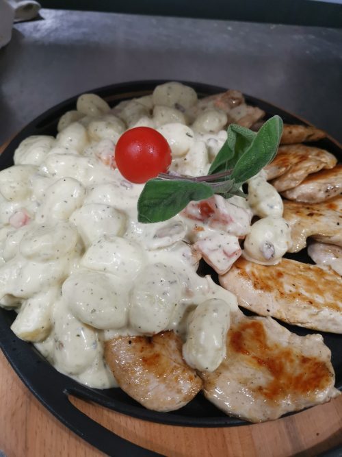 Recept za piletinu s njokama Mojoj bazi dao je profesionalni kuvar Željko Sredojević.