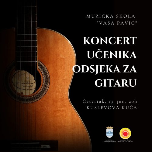 Koncert učenika odsjeka za gitaru Umjetničke škole za muziku i balet ,,Vasa Pavić” biće priređen u četvrtak, 13. juna, u 20 sati, u Kuslevovoj kući, saopšteno je iz PR službe Sekretarijata za kulturu Glavnig grada.