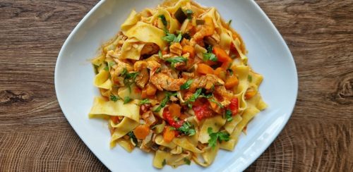 4. Tjesteninu zajedno s malo vode, u kojoj se kuvala, dodati piletini. Sve dobro promiješati i posuti peršunom.
