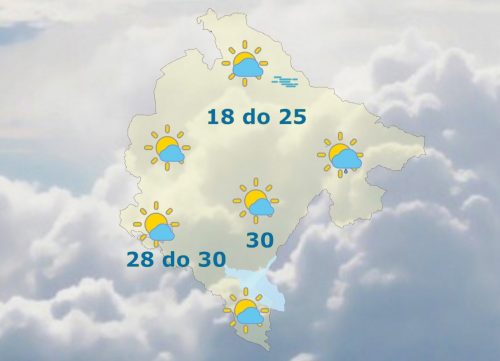 U Crnoj Gori sjutra će biti promjenljivo oblačno sa sunčanim intervalima i uglavnom suvo. Ujutru na sjeveru više oblaka, a po kotlinama moguća i magla. Vjetar slab do umjeren promjenljivog smjera. Jutarnja temperatura vazduha od 8 do 20, najviša dnevna od 18 do 30 stepeni, kazali su iz Zavoda za hidrometeorologiju.