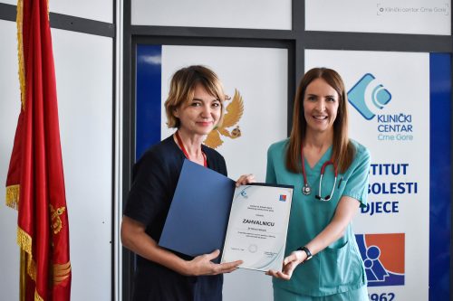 Uručila je zahvalnice donatorima, kao i dr Oliveri Sekulić, načelnici Odjeljenja za gastroenterohepatologiju Interne klinike i specijalisti opšte i supspecijalisti digestivne hirurgije hirurške klinike, dr Aleksandru Kujoviću, povodom timskog rada i posebnog doprinosa i stručne podrške u liječenju najmlađih pacijenata.