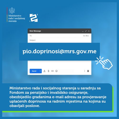 Ministarstvo rada i socijalnog staranja u saradnji sa Fondom za penzijsko i invalidsko osiguranje, obezbijedilo je građanima e-mail adresu za provjeravanje uplaćenih doprinosa na radnim mjestima na kojima su obavljali poslove, naveli su iz tog resora.