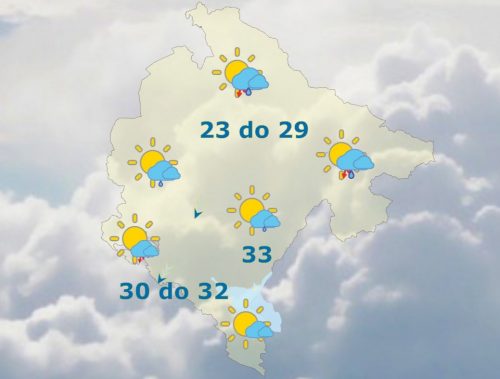 U Crnoj Gori sjutra će biti promjenljivo, na jugu duži sunčani intervali, a uglavnom od sredine dana uslovi za mjestimičnu kišu ili pljusak i grmljavinu, češće na sjeveru zemlje. Na sjeveru po kotlinama lokalno je moguća jutarnja magla. Vjetar slab do umjeren, krajem dana i tokom noći sjeverni i sjeveroistočni u pojačanju, mjestimično, umjeren do jak. Jutarnja temperatura vazduha od 12 do 22, najviša dnevna od 23 do 33 stepena, kazali su iz Zavoda za hidrometeorologiju.