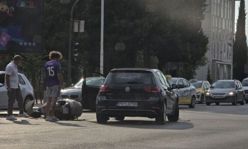 U saobraćajnoj nezgodi, u kojoj su učestvovali motor i automobil, a koja se dogodila danas oko 17 časova u Bulevaru Ivana Crnojevića, nije bilo povrijeđenih.