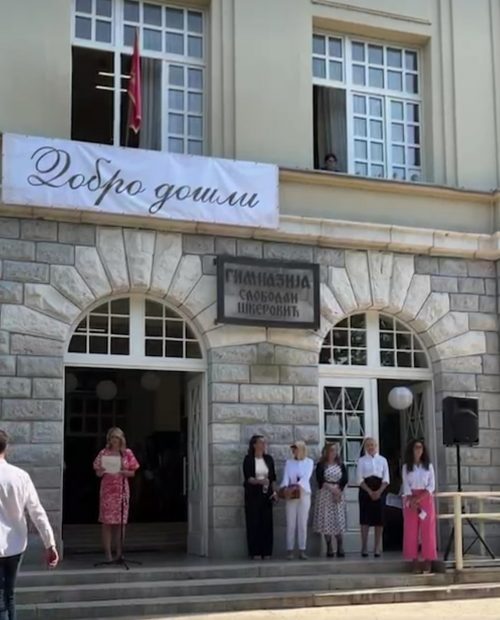 Ispred škole je veliki broj đaka, a pozdravila ih je direktorica Biljana Vučurović.