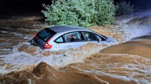 Automobil je bio na cesti, ali bujica je došla toliko brzo i bila je toliko jaka da nisu mogli izaći iz auta. Srećom, vatrogasci su uspjeli spasiti cijelu porodicu, odnosno supružnike i dvoje djece.