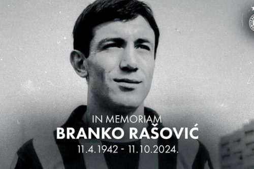 Legendarni fudbaler Branko Rašović preminuo je u 83. godini. Rašović je od 1964. do 1969. igrao kao defanzivac Partizana, sa kojim je 1966. godine poražen u utakmici za prvaka Evrope od Real Madrida (2:1).