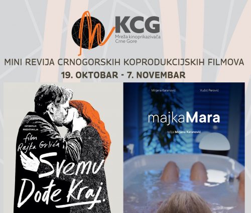 Mreža kinoprikazivača Crne Gore organizuje mini reviju manjinskih crnogorskih koprodukcija – od 19. oktobra do 7. novembra publika širom Crne Gore moći će da pogleda ostvarenja „Svemu dođe kraj“ reditelja Rajka Grlića i „Majka Mara“ u režiji Mirjane Karanović. Pored neospornog kvaliteta filmova, posebno raduje zastupljenost crnogorskih stvaraoca u njima, što pokazuje napredak i daje veću vidiljvost naše kinematografije u regionalnim i evropskim okvirima. Mini revija aktivnost je koju Mreža kinoprikazivača Crne Gore organizuje paralelno sa projekcijama novog filma Gojka Berkuljana „Planeta 7693“, saopšteno je iz Mreže kinoprikazivača Crne Gore.
