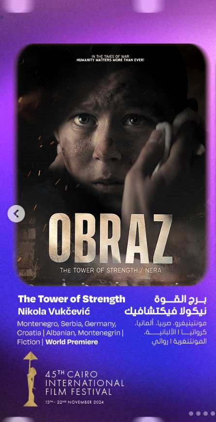 – U petak, 15. novembra, u kompleksu Opere Kaira, u Hanager teatru, svoju internacionalnu premijeru je imao novi crnogorski film OBRAZ, reditelja Nikole Vukčevića, koji je publici ovog uglednog festivala predstavio film obrativši im se u zvaničnom protokolu pred premijeru, predstavivši i dio ekipe koja je na festivalu: producenta Milorada Radenovića, hrvatskog ko-producenta Daria Domitrovića, direktora fotografije Đorđa Stojiljkovića, te dizajnera zvuka Igora Vujovića. Premijerna sala je bila ispunjena gotovo do posljednjeg mjesta, a nakon projekcije je uslijedio dugotrajan aplauz i vrlo emotivan razgovor sa publikom, koja je sa puno razumijevanja reagovala na radnju filma. Uoči ove premijere, u festivalskom katalogu, kritičar FIPRESCI-ja Zein Alabedin Khairy, o filmu je napisao: Istorijska drama smještena u period Drugog svjetskog rata, koja istražuje duboka ljudska pitanja, spajajući intimnu priču i napetost. Odražava sukob između hrabrosti i straha, humanosti i brutalnosti. Priča se razvija otkrivajući kako dječak i njegov domaćin prolaze kroz psihološke i moralne izazove rata – dječak simbolizuje nadu i nevinost, dok Doka oslikava složenost preživljavanja usred korupcije i nasilja – navodi se u saopštenju Galileo Productiona.