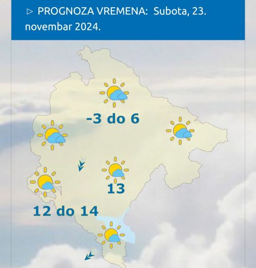 – Na sjeveru ujutru ili prijepodne mjestimično povećana oblačnost, zatim duži sunčani intervali. Vjetar slab do umjeren, mjestimično pojačan, ponegdje na udare jak, prvenstveno tokom jutra i noći. Jutarnja temperatura vazduha od -12 do sedam, najviša dnevna od minus tri do 14 stepeni – navodi se u saopštenju ZHMSCG.