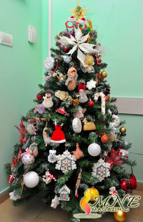 Uz ukrase poput praznične kućice, lutke, Snješka Bjelića, medvjedića, pahulja, haljina Baka Mrazice, mjesto u vrhu jelke našle su i novogodišnje naočare. Ovako ukrašena jelka privlači pažnju malih pacijenata i podsjeća na radost iščekivanja praznika.