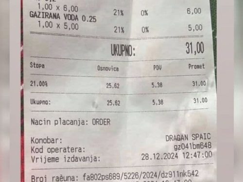 O tome svjedoči račun iz restorana “Jezerine” koji su dostavili čitaoci Pobjede.