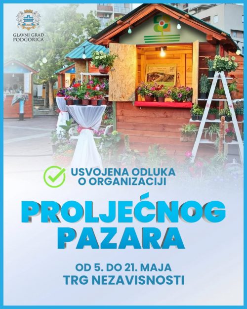 Skupština Glavnog grada Podgorice usvojila je Odluku o organizaciji Proljećnog pazara, koji će se održati od 5. do 21. maja na Trgu nezavisnosti.