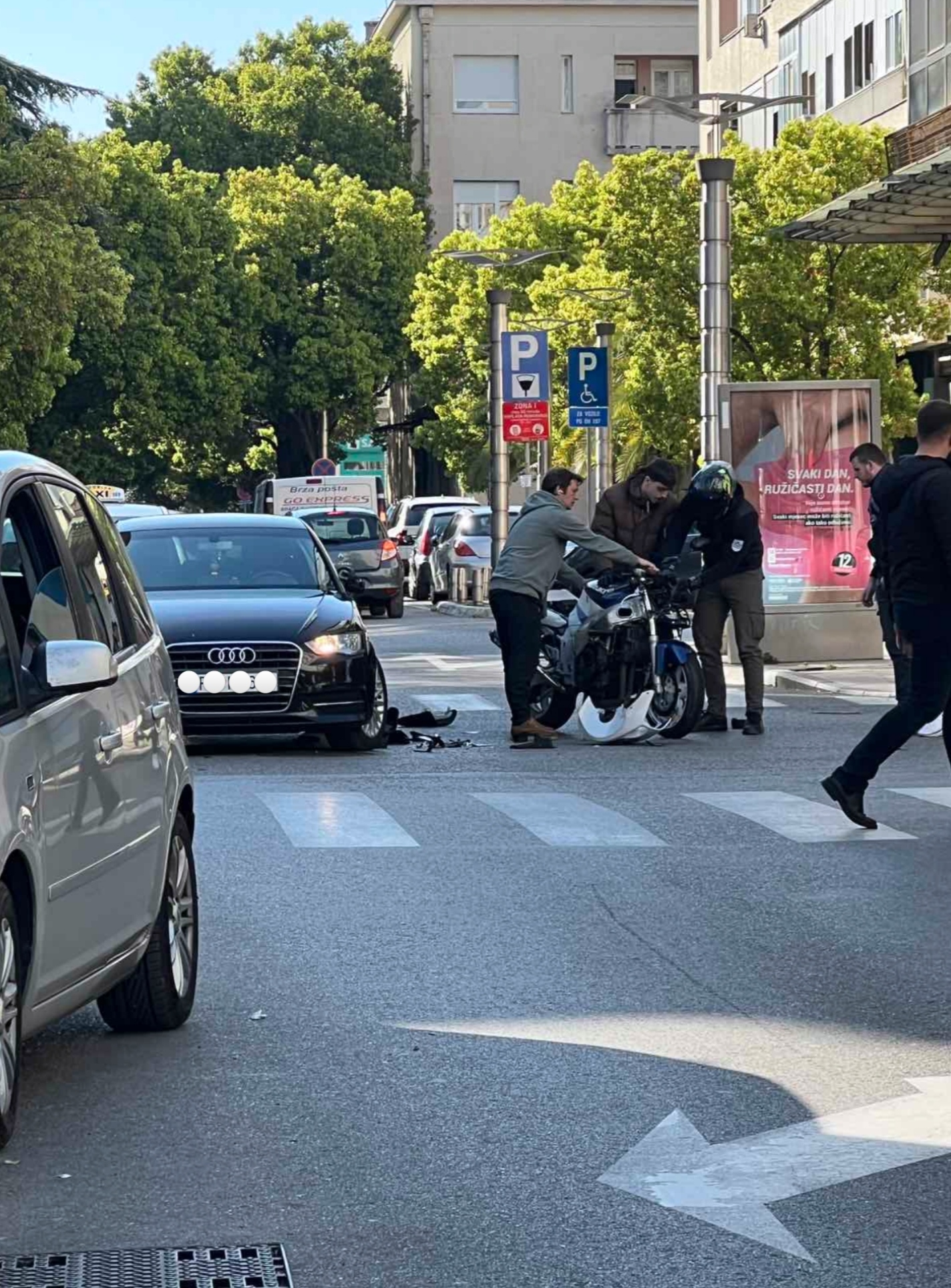 U saobraćajnoj nezgodi koja se prije pola sata desila u centru Podgorice, u kontaktu automobila i motora, oboren je motociklista. On je, prema riječima očevidaca, prošao sa lakšim povredama. Nezgoda se desila na raskrsnici Karađorđeve i Ulice Slobode.