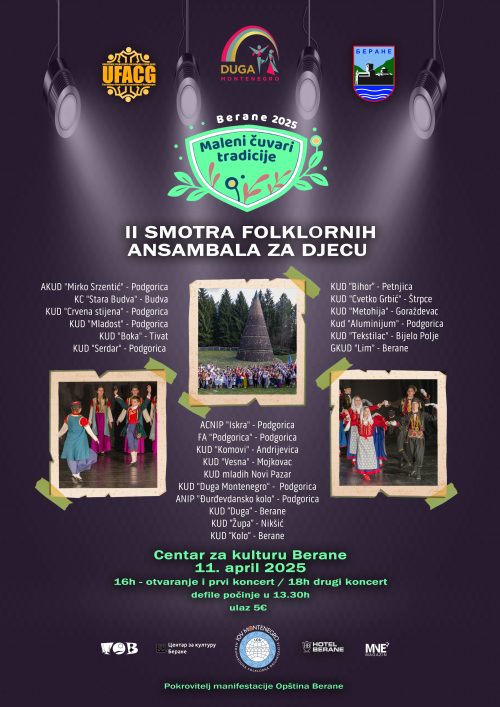 Berane će 11. aprila ponovo biti obasjano šarenilom tradicije i dječijim osmijesima, jer će po drugi put biti domaćin Smotre folklornih ansambala za djecu pod nazivom “Maleni čuvari tradicije – Berane 2025.”. Ova manifestacija, koju organizuje KUD “Duga” iz Berana uz podršku Opštine Berane, nastavlja da slavi bogatstvo folklorne baštine. Kao i uvijek kada se o ovakvim događajima radi, za uspjeh brinu UFACG i TO Berane.