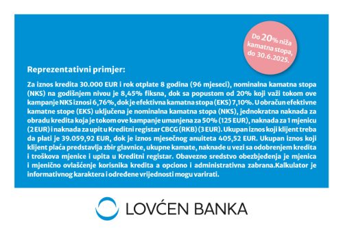 Specijalna ponuda Lovćen banke traje do 30. juna 2025.