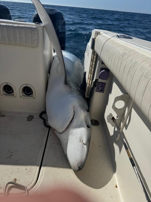 Ajkulu tešku oko 150 kilograma ulovili su jutros ribari u moru kod Ulcinja. U ekipi su bili podgorički ribolovci koji su za naš portal rekli da je riječ o modrulji, vrsti ajkule koja nije opasna za ljude, te da su je ulovili na oko deset milja udaljenosti od obale.