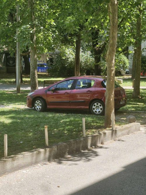 Vođen parolom da bahatost opravda ličnim interesima, vozač je parkirao automobil na pješačku stazu u parku onemogućavajuci prolaz pješacima i prilaz parkovskom mobilijaru.