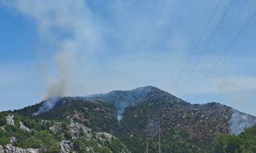 Požar koji je juče izbio na području Obzovice i zbog jakog vjetra brzo se proširio na veći dio brda aktivan je i danas.