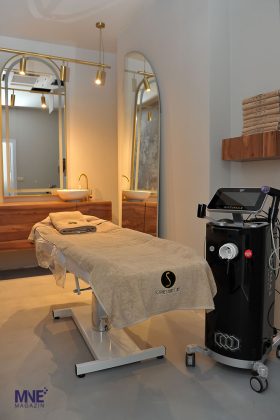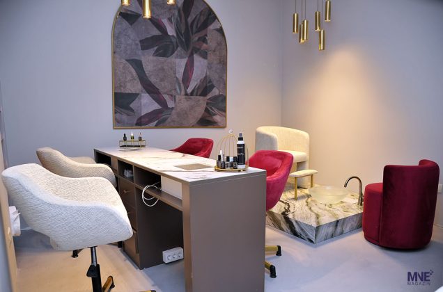 Ono što takođe plijeni pažnju u novom konceptu je nesvakidašnji enterijer sa šampanj barom koji asocira na enterijere svjetskih salona ljepote, ali i nudi notu urbanosti i autentičnosti po kojoj će ovaj koncept ,,Sophie's Beauty Line” sigurno biti prepoznatljiv.