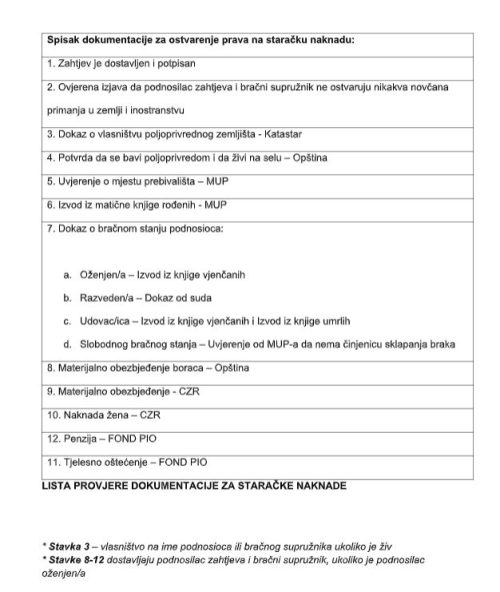 Korisnici koji ne dostave ažuriranu dokumentaciju u navedenom roku, smatraće se da su odustali od prava na staračku naknadu.