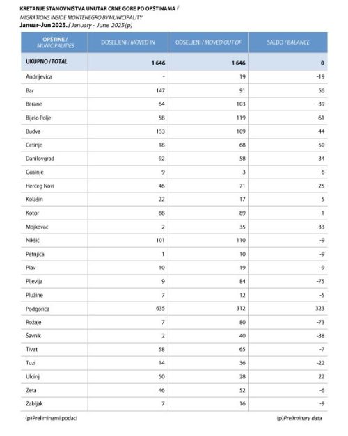 Negativan prirodni priraštaj zabilježen je u čak 18 od 25 crnogorskih opština. Najteže stanje je u Pljevljima, gdje je zabilježen minus od čak 106, zatim u Nikšiću sa -64, te u Bijelom Polju sa -40. Ovo potvrđuje da se problemi depopulacije najviše osjećaju u sjevernim opštinama.