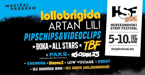 Tokom trajanja festivala svih šest večeri HSF organizuje i vrhunske koncerte za koje je ulaz besplatan, pa tako na veče otvaranja, u petak 5. septembra, od 22 sata na tvrđavi Forte Mare će nastupiti poznati sastav „Lollobrigita“ koji predvodi sjajna Ida Prester, a kao predgrupa će nastupiti mladi beogradski sastav „Paks“ pobjednik Bunt Rock festivala sa kojim HSF sarađuje skoro punu deceniju. Na istoj lokaciji za sljedeću veče, subotu 6. septembra, zakazan je koncert grupe „16-OSAM-23”, a zvijezda večeri je izuzetan por-rock sastav „Artan Lili“. Nedjelja, 7. septembar, je rezervisana za još jednu spektakularnu svirku koju će donijeti legendarni sastav „Pips, chips & videoclips“ iz Zagreba, dok će publiku zagrijati danski DJ MadraZ. Muzičko-scenski spektakl devetnaestog izdanja HSF-a se nastavlja u ponedjeljak, 8. septembra na People's beach klubu, multumedijalnim projektom italijanskog dvojca Mioreli-Bekini – „Comics Beyond: Moby Dick City Blues”, a noć na istoj lokaciji zatvara sjajna DJ Andrea Nox iz Podgorice. Utorak veče, 9. septembar je rezervisan kao i svake godine za nastup u kultnom Amfiteatru Hercegnovskog pozorišta i za domaće snage – bend „Chenova“ iz Đenovića, ali i ekipu vrhunskih muzičara nazvanu „Boka all star“, a koju čine Marko Vlahović, Dragan Ivanović, Martin Đorđević, Goran Milojević, Miodrag Šule Jovović, Sara Jovović i Antonije Pušić. Muzički program 19. HSF-a zaokružuje koncert splitske hip-hop senzacije „TBF“ koji će na People's beach klubu u srijedu 10. septembra i zatvoriti festival. Podsjetimo, da su specijalni gosti: Eduardo Riso (Argentina), Fransoa Buk, Tristan Lagranž Triston, Žan Šarl Pupar (Francuska), Hari Randolf (SAD), Mark Simpson Džok (Velika Britanija), Alehandro Gonzales Ćermaniko (Španija), Juri Landman (Holandija), Maria Laura Sanapo, Marko Santući, Valeria Burzo, Luka Strati (Italije), kojima će društvo u Herceg Novom na devetnaestom izdanju HSF-a, praviti još 130 ne manje specijalnih umjetnika iz ukupno 25 zemalja svijeta. Takav impresivan spisak svih onih autora koji dolaze i vraćaju se na Hercegnovski strip festival još jednom potvrđuju izuzetnu reputaciju koju ova manifestacija ima u evropskim i svjetskim okvirima.