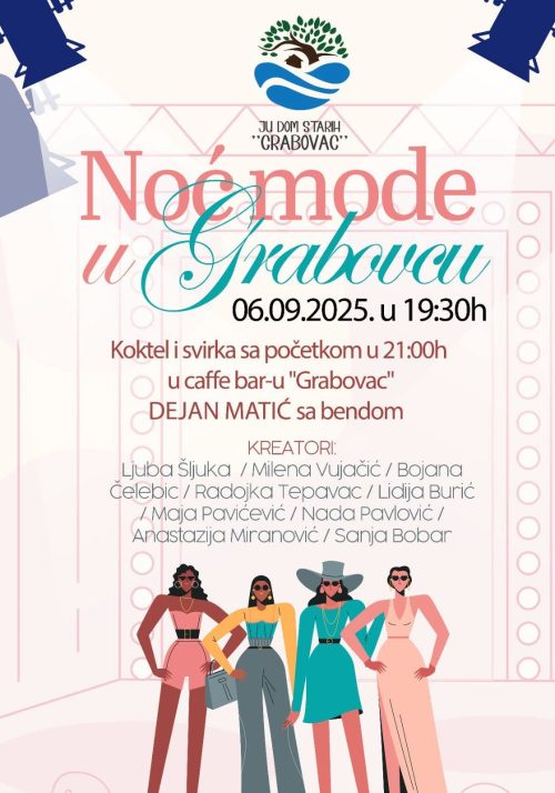 Sedmo izdanje manifestacije koja u sebi nosi mnogo humanosti i ljepote ,,Noć mode u Grabovcu” biće održano 6. septembra u 19:30 sati u JU Domu starih ,,Grabovac”. U 21 sat u caffe baru ,,Grabovac” nastupiće Dejan Matić.