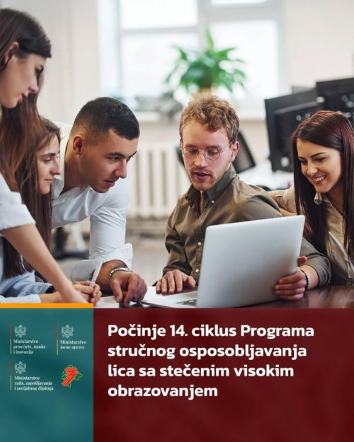 Počinje 14. ciklus Programa stručnog osposobljavanja lica sa stečenim visokim obrazovanjem koji će se realizovati od 15. januara 2026. godine, saopšteno je iz PR službe Ministarstva prosvjete, nauke i inovacija Crne Gore.