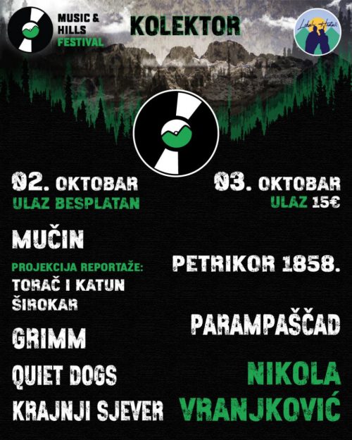 – Hedlajner prve večeri festivala 02.10. je kultni barski bend Grimm koji je na sceni već više od 20 godina i svojim radom daje uzor mlađim bendovima da moraju da istraju u njegovanju svojih ideja. Uz Grimm, 02.10. imaćemo priliku da čujemo post pank bend Mučin (Podgorica-Nikšić) koji je ove godine objavio dva izdanja, zatim Kranji sjever, Podgoričane koji već tri godine u kontinuitetu objavljuju materijal i mlade nikšićke hard core nade Quiet Dogs. Prve festivalske večeri nas očekuje i premijera reportaže Lokalnih hodača posvećene festivalu, ,,Torač i katun Širokar”. Tradicionalno, ulaz za prvo festivalsko veče je slobodan – navodi se u saopštenju PR službe Music and Hills festivala.