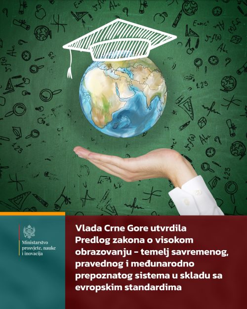 Na današnjoj sjednici Vlada Crne Gore je utvrdila Predlog zakona o visokom obrazovanju, koji je pripremilo Ministarstvo prosvjete, nauke i inovacija. Ovim predlogom postavljaju se temelji savremenog, pravednog i međunarodno prepoznatljivog sistema visokog obrazovanja, u skladu