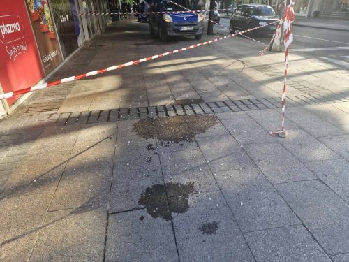 Iako je ovo jedno od najprometnijih područja u gradu i pješačka zona nakon 17 sati, problem još nije riješen. Na trotoaru su i dalje ostaci stakla, a na nadstrešnici vidno oštećenje i dio staklene table koji ,,visi”.